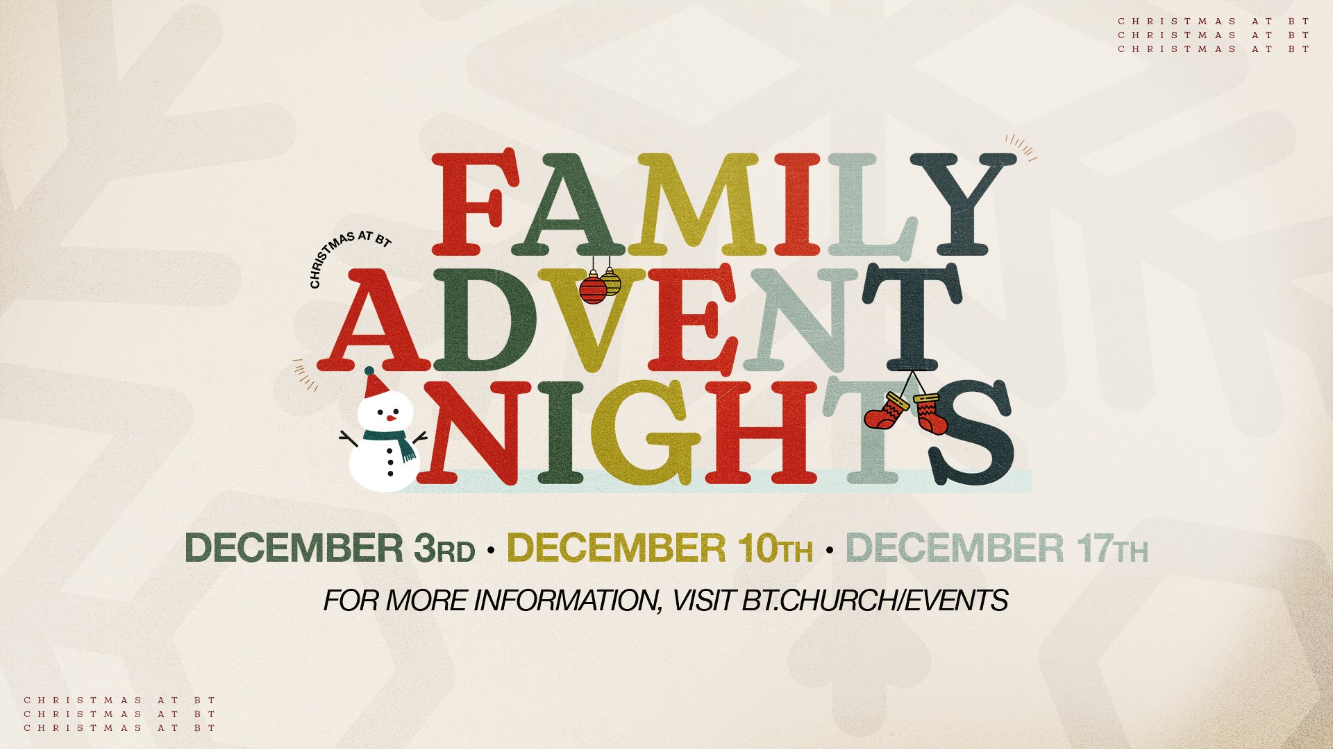Christmas at BT will be Family Worship (all kids and students will join us for service)